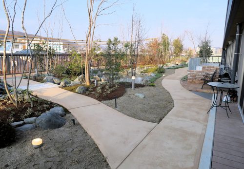 広島県福山市の総合リハビリケアセンターアクティブワン様の3階屋上庭園にSLソイルサンド舗装の歩道を株式会社 松誠園緑地建設様(広島県福山市)に施工して頂きました。詳細を施工事例に掲載いたしました。…